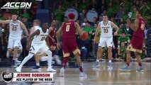 Boston College's Jerome Robinson poured in a career-high 46 points at Notre Dame on February 6, 2018 in one of the best scoring performances in ACC history. Robinson was 15-23 from the floor as he tied the second-highest single-game point total in Eagles' history. Hear from the key figures who were on the floor that night during Robinson's career performance.