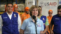 Trucks carrying desperately-needed humanitarian aid for crisis-wracked Venezuela arrive at its border with Colombia as ministers from more than a dozen European and Latin American countries call on socialist leader Nicolas Maduro to hold "free" presidential elections with the US criticizing their move.