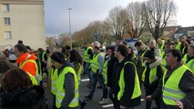 Les Gilets jaunes bloquent un parking par lequel transitent de nombreux poids lourds