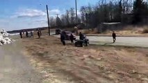 Il saute dans une rivière gelée... et se casse le nez dessus !