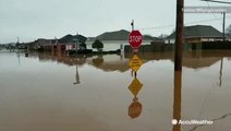 Many people in Muscle Shoals, Alabama were forced to evacuate as floodwaters left this neighborhood underwater.