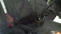 Yaklaşık yarım saat süren beklemenin ardından olay yerine gelen ve ismi belirtilmeyen kişi, aracın kapsını açarak yavru köpeği sakinleştirdi.