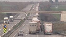 - Tır kuyruğundan drone ile çekim detayı - Kuyruktan ve Kapıkule Sınır Kapısı'ndan detaylar - Tır şoförünün açıklamaları - Tır kuyruğu Kapıkule Sınır Kapısı'nda 15, Hamzabeyli Sınır Kapısı'nda ise 7 kilometreye ulaştıEDİRNE (AA) - Avrupa'ya çıkış yapmak isteyen tırlar, sınır kapılarında yoğunluğa neden oldu.İhracat yüklerini teslim edecekleri ülkelere yetiştirmek için yola çıkan tır sürücüleri, sınır kapılarında kuyruk oluşturdu. Tır kuyruğu Kapıkule Sınır Kapısı'nda 15, Hamzabeyli Sınır Kapısı'nda ise 7 kilometreyi buldu.Kapıkule Sınır Kapısı önünde yaklaşık 600, Hamzabeyli Sınır Kapısı önünden ise yaklaşık 280 tır, yurt dışına çıkmak için işlemlerinin tamamlanmasını bekliyor.Almanya'ya yük taşıyan tır şoförü Murat Ayaydın, gazetecilere yaptığı açıklamada, 12 saattir kuyrukta beklediğini belirterek, "Nereden baksan 24 saat daha kuyrukta bekleriz. 36 saatte ancak Bulgaristan'a gireriz. Kuyrukların elli tane sebebi var. Bulgar'ın araba çekmemesi, dozvola belgesi olmayan araçların parkı kapatması, sollamalar, bunlar kuyrukların nedenlerinden." diye konuştu.