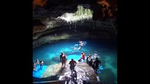 Ils plongent et nagent dans un lac souterrain magnifique