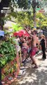 Foliões ‘laranjas’ em frente ao condomínio de Bolsonaro