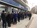 Toplu Konut İdaresi Başkanlığının (TOKİ) Eskişehir'de yapacağı bin dairelik sosyal konut projesi kapsamında ev sahibi olmak isteyenler banka önünde sıraya girdi.