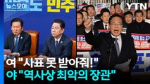 하지만 민주당은 사과를 요구했고, 한국당은 박수로 그 야유를 덮는 등 어수선한 분위기는 한 시간 연설 내내 이어졌습니다.