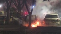 사고 직후 차량 두 대가 불에 탔고 부근 고속도로 통행이 2시간가량 정체됐습니다.