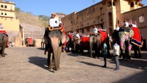 At the famed Amer Fort in Jaipur, Rajasthan state, CCTV footage shows the elephant "Number 44" can be seen pushing against elephant "Number 74" in front of the fort’s Suraj Pole gate.