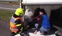 Un chauffeur perd le contrôle de son camion et se retrouve sur deux roues