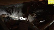 Técnicos del Ayuntamiento de Barcelona y Bomberos de la Barcelona revisan este lunes el terreno de la barcelonesa plaza Isop en el barrio de la Teixonera en el que este viernes se originó un socavón de 20 metros que obligó a desalojar a ocho pisos.