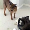 Ce Husky a peur d'un chat sauvage. Regardez !