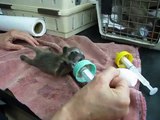 This is the moment a rare albino racoon reclines in an animal basket wearing a babies bib while feeding itself blueberries from a bowl. The adorable mammal then chews each blueberry with excitement in its eyes demonstrating almost human-like qualities.