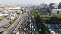 - Atatürk Havalimanı’ndan İstanbul Havalimanı’na saat 03.00 sıralarında başlayan ‘Büyük Göç’ yolunda ekipmanları taşıyan tırlar, sabah trafiği yoğunluğuna takıldı. Trafikte kalan tırlar havadan görüntülendi. İstanbul’un yeni havalimanına doğru dün akşam saatlerinde Atatürk Havalimanı’ndan başlayan büyük göç yolunda ekipmanları taşıyan tırlar birer birer yola çıkmıştı. Sabahın ilk ışıklarında da ekipman ve malzeme taşıyan tırlar Basın Ekspres Yolu’ndan, Kuzey Çevre Otoyolu’na doğru hareket etti. Haftanın son iş gününde yola çıkan tırlar, Basın Ekspres Yolu’nda trafik yoğunluğuna takıldı. Tırların trafik yoğunluğunda güçlükle ilerlemesi havadan da görüntülendi.
