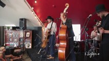 Train leaving the station and moving through rustic and semi-urban India.