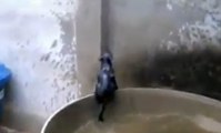 En voulant grimper sur un mur, ce chat atterrit à chaque fois dans l'eau