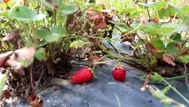 Çilek üreticilerinin tarlada çilek koparması