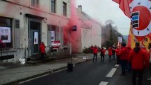 La façade du siège de la FEB aspergée de peinture par les syndicats