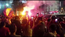 Kent merkezindeki caddelerde ve sokaklarda araçlarıyla konvoy oluşturup sevinç gösterisinde bulunan Galatasaraylı taraftarlar, meşale yakıp şampiyonluk coşkusunu doyasıya yaşadı.