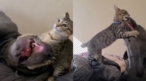 This dog played to win while wrestling with his female owner. Hilariously, the pup tackled her to the ground and tried to pin down his owner's arms while she laughed.