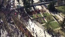 Fishekzjarrë të shumtë, shpërthimi i të cilëve është bërë në mënyrë të pakontrolluar, në drejtim jo vetëm të policëve por edhe të vetë protestuesve që i kanë hedhur, u hodhën para Parlamentit ku u zhvendos protesta e opozitës pas tubimit tek kryeministria. Turma u shpërnda vetëm pas hedhjes së gazit lotsjellës nga ana e policisë, ndërsa situata e krijuar ishte mjaft kaotike.