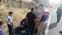 Ekiplerin yanan araca müdahalesi