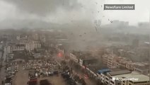A tornado ripped through northern China's Dasuji Township, breaking trees and poles while damaging houses and walls.