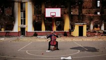 El violonchelista Denys Karachevtsev regala un momento de calma a los vecinos de Járkov