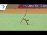 Polina BEREZINA (ESP) competes with hoop in the senior all-around final and scores 16.500