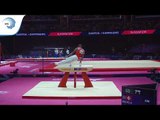 Benjamin GISCHARD (SUI) scored 14.033 (5.6) on pommel horse in the qualification round of Glasgow 2018.