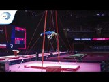 Igor RADIVILOV (UKR) scores 14.833 (6.0) on rings in the qualification round and qualifies to the final in first place.
