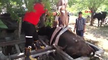 Tarım aletine sıkışan ineği kurtarma operasyonu
