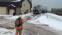 Un camion citerne prend feu