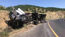 İş makinesi yüklü kamyon devrildi: 1 yaralı