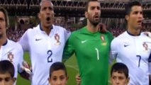 Cristiano Ronaldo telling his fellow countrymen to slow down their singing of the anthem