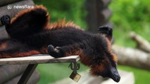 A silverback gorilla appeared to be sunbathing as he fanned out over the grass during a hot day at Bristol Zoo, England. The gorilla, named Jock, wriggled to get comfortable and showed off his big teeth on May 30.