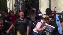 Tommy Robinson protesters chant loudly outside Leeds Crown Court