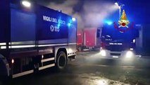 Montoro (AV) - In fiamme deposito di camion, distrutti 4 automezzi (18.01.20)