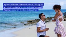 Hyland shared her engagement to Adams with fans on social media, posting images showing the lovebirds kissing and hugging on a beach.
