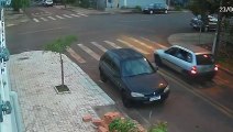 Câmera de monitoramento registra colisão entre carro e moto na rua Benedita Soares