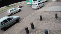 Vídeo mostra motociclista sofrendo queda após colisões na Avenida Rocha Pombo