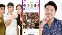 Internet sensations and "Escape The Night" stars Joey Graceffa and Bretman Rock try nine things they've never done before, from performing a synchronized ribbon dance to practicing yoga in inflatable suits.