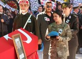 Naaşın cenaze aracıyla geçişi esnasında şehidin kız kardeşi, "Gardaşım, bayramın mübarek olsun." diye seslendi.