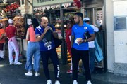 İSTANBUL - Liverpool ile Chelsea arasında oynanacak olan UEFA Süper Kupa maçı öncesinde İstanbul'a gelen taraftarlar Taksim'e akın etti. İstiklal Caddesi'nde dolaşan bazı taraftarlar döner yemeyi ihmal etmedi. Ayrıca Cumhuriyet Anıtı'nın çevresine polis bariyerleri indirildi.