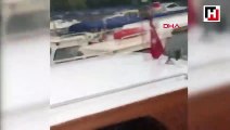 - Yoğun yağış sonrası Kurbağalıdere'de bir tekne battı. O anlar cep telefonu kameralarına saniye saniye yansıdı.
