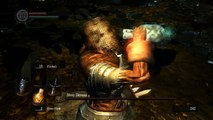 ...courant à travers le Ravin Noir dans tout son dégoût - du poison étant craché dans toutes les directions pendant que les flaques d'huiles sur le sol rappellent qui y réside, je tombe sur le rebord où le dirigeant du Serment des Pèlerins des Ténèbres toujours attend - je me dis: "J'ai quelques effigies de plus, je ne les utilise pas pour restaurer mon humanité en tout cas, je veux juste terminer avec ce Gouffre Obscur une fois pour toujours!", donc j'ouvre le portail et je m'y rends encore une fois. Le personnage cuirassé - comme d’habitude - fait de dégâts énormes au jambon avec ses deux grands marteaux mais je remarque que si j'applique des coups d'estocs avec mon espadon de chevalier noir, la "tortue sombre" roule en arrière et de plus, son armure est trop lourde pour que cette action de retraite peut avoir lieu optimalement rapidement - je meurs sur cet essai aussi mais sur le suivant, mes coups forts, en effet, forcent cet adversaire de reculer...seulement pour qu'il soit remplacé par le pyromancien, incinérant le jambon avec des sorts incessants d'une puissance énorme qui lui permettent de blesser notre personnage aussi fortement que les marteaux mais de distance, voulant dire que je ne peux pas l’atteindre, même avec la portée que la gaufrette me donne. Enfin, quand je décide à passer ces deux et l'arbre-clerc qui les accompagne, allumant le bougeoir et courant vers la sortie, je ne trouve que de la brume qui m’empêche de m'en aller et l'autre trio qui marque la dépensée de mes effigies.