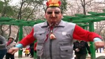A man invents a 'new instrument' as he plays a traffic cone hoping to get tips from pedestrians (August 21) in London, United Kingdom.