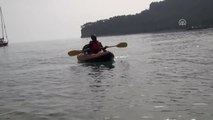 - Sporcuların hazırlığından detaylar - Bayram teslim etmeden detaylar - Aydıncık Belediye Başkanın Ferat Aktan ile röportaj - Sporcu Şenol Özdemir ile röportaj - Sporcu Nüşabe Deniz Paşazade ile röportaj - Sporcuların denize açılmasından detaylar Mersin 'den Kıbrıs'a kanoyla yolculuk başladı - Uyuşturucuyla mücadeleye ilişkin farkındalık oluşturmak isteyen iki sporcu, Mersin 'in Aydıncık ilçesinden Kıbrıs'a kadar kanoyla gitmek için denize açıldı - Sporculardan Nüşabe Deniz Paşazade: - "Umuyoruz ki gençler bizi gördükten sonra madde bağımlılığı değil, spor bağımlılığına kapılır. İyi bir örnek olmayı düşünüyoruz. Tarihte ilk kez Türkiye'den Kıbrıs'a kanoyla geçilecek"MERSİN (AA) - Uyuşturucuyla mücadeleye ilişkin farkındalık oluşturmak isteyen iki sporcu, Mersin 'in Aydıncık ilçesinden Kıbrıs'a kadar kanoyla gitmek için yola çıktı.Kuzey Kıbrıs Türk Cumhuriyeti (KKTC) Başbakanlığı Uyuşturucuyla Mücadele Komisyonu ile kano sporcuları Şenol Özdemir ve Nüşabe Deniz Paşazade'nin iş birliğinde gerçekleştirilen deneme için Aydıncık ilçesindeki limanda tören düzenlendi.