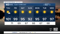 Our highs for the next several days will be between 105 and 110, but there is a silver lining: there is a chance of storms each day from Saturday through Thursday.