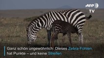 Im Naturschutzgebiet Masai Mara in Kenia hat ein gepunktetes Zebra-Fohlen das Licht der Welt erblickt. Die ungewöhnliche Fellfärbung ist wohl auf einen Gendefekt zurückzuführen.
